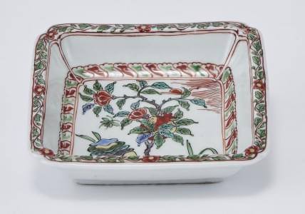 300. Coupe carrée à émaux wucai, Chine, époque Transition, période Sh...