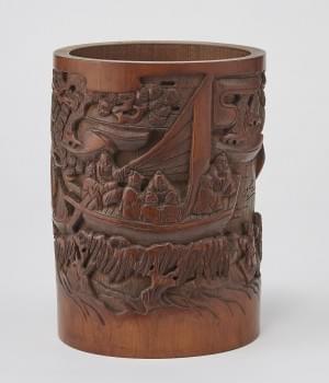 378. Bitong à décor de scènes animées en relief, Chine, XIXe s