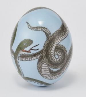 Cuivre et émaux polychromes à décor de serpents, H 12 cm