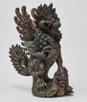 Bois sculpté et laqué noir et rouge, H 165 cm