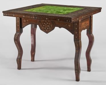 Bois marqueté et incrustations de nacre, 82x88x45 cm