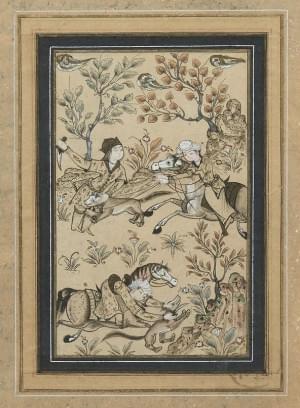 Scènes de chasse, encre et gouache sur papier, 15x11 cm