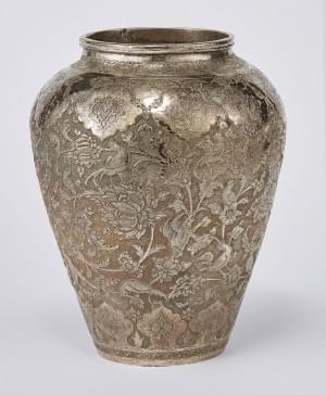 Argent ciselé à décor de fleurs et oiseaux, H 20 cm, 780 g