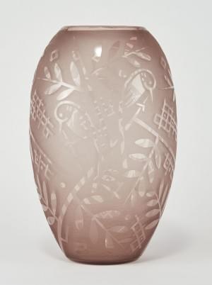 Verre multicouche dégagé à l'acide à décor de fleurs mauves sur...