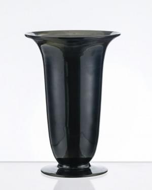 Vase balustre à col annelé, verre vert à patine lustrée noire, H...