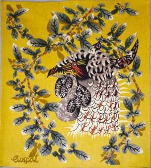 Tête de coq, tapisserie d'Aubusson, atelier R. Picaud, signé sur...