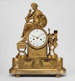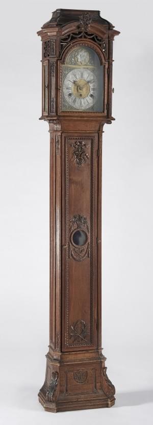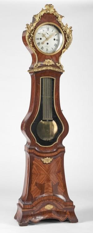 Bronze doré, cadran émaillé blanc, signé Chevrau à Paris, H 89 c...
