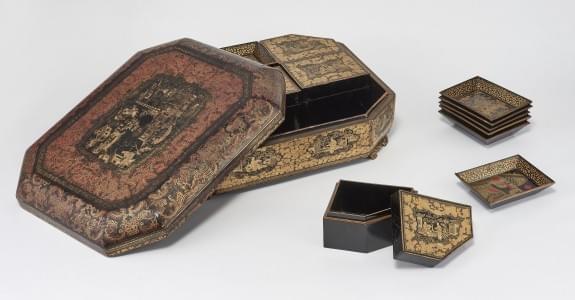 585. Boîte à jeux anglo-chinoise en laque de Canton, circa 1900