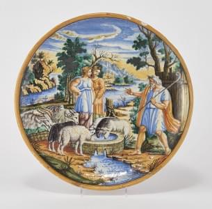 Céramique émaillée polychrome à décor de Moïse et des filles de...