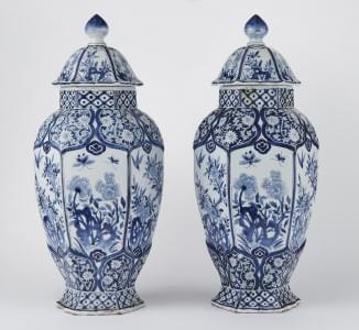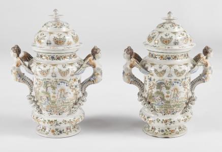 594. Paire d'importants pots couverts, Moustiers, Olerys, XVIIIe s