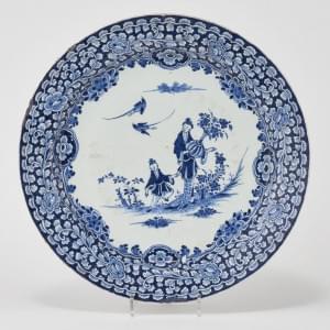 Faïence émaillée bleu blanc à décor d'un personnage, D 43 cm