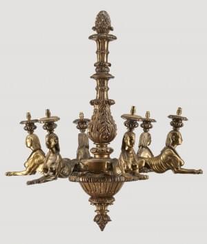 Les lumières supportées par des sphinx allongés, bois sculpté et...