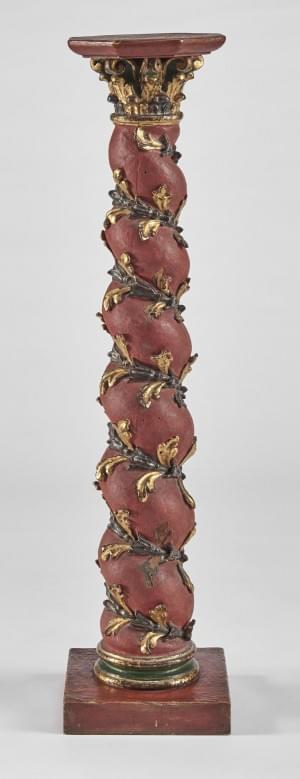 Bois peint polychrome à décor aux armes, 162x84x72 cm