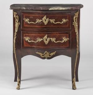 Deux tiroirs, placage de bois de rose et de violette, bronze dor...