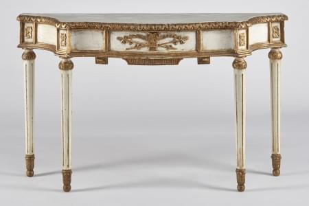 Bois sculpté laqué or et blanc, 81x130x38 cm