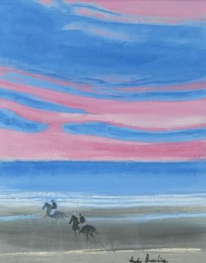 Deux cavaliers sur la plage, huile sur toile, signée, 41x33 cm....