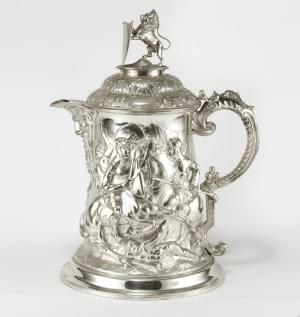 859. Monumentale chope d'époque victorienne à décor repoussé d'une ba...
