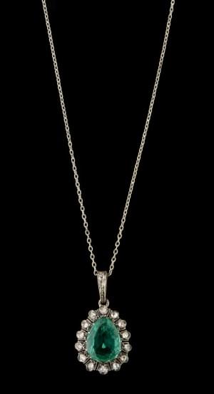973. Pendentif serti d'une émeraude taille poire (env. 3 ct) entourée...