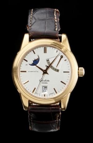 Cadran argenté, aiguilles et index bâtons dorés, phases de la Lu...