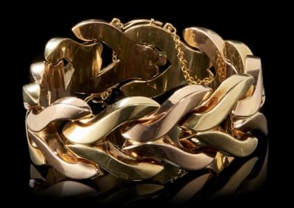 956. Boutons de manchettes à motif de maille gourmette deux ors