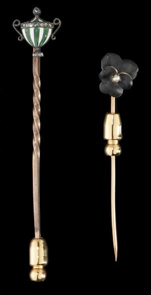 959. Lot de deux épingles émaillées, l'une ornée d'une urne et l'autr...
