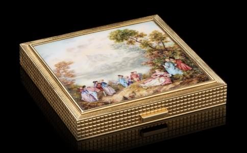 965. Poudrier à décor d'une miniature représentant une scène galante...