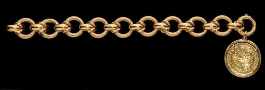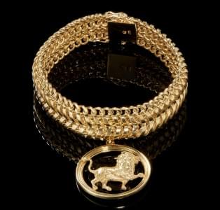 982. Bracelet gourmette retenant une médaille du signe du lion