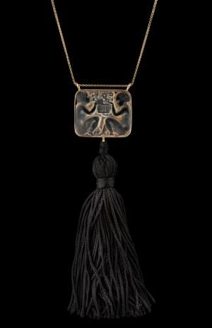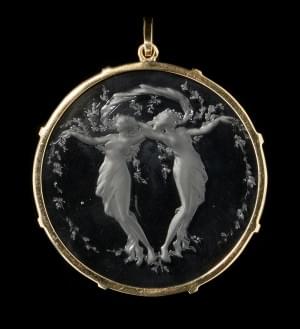 985. R. Lalique, pendentif rond à motif de deux muses en intaille