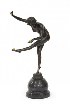 La jongleuse, bronze à patine foncée et dorée, base en marbre no...