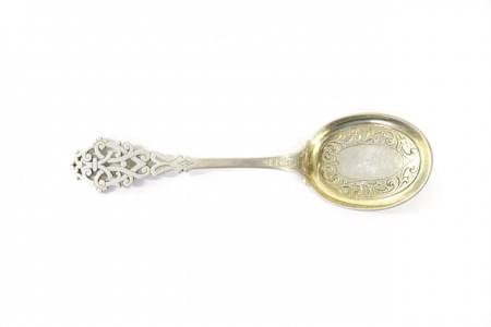 3927. Cuillère à manche ajouré et cuilleron gravé de rinceaux