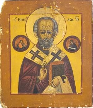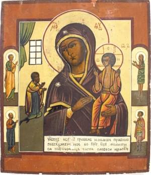 Icône sur panneau à oklade en métal argenté et doré, 30x25 cm