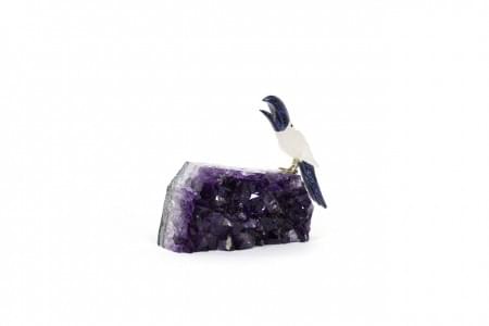 Coucou, médaillon en bronze à patine noire, perles et strass, D...