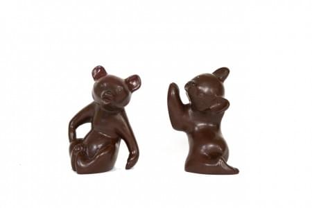 Paire de serre-livres, ours, H 20 et 22 cm