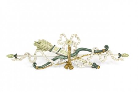 Bois sculpté et peint à décor d'un carquois et flèches, L 88 cm