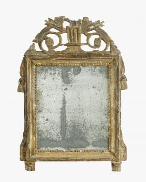 Bois sculpté et doré, glace au mercure, 47x39 cm