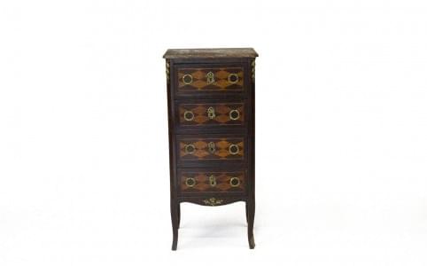Quatre tiroirs, bois de placage, bronze et marbre, 93x40x29 cm