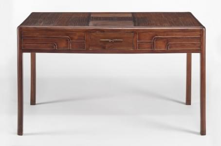 Acajou flammé, marbre gris, 144x92x39 cm
