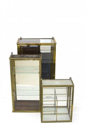 Laiton et verre, 90x55x30; 80x40x15 et 53x40x18 cm