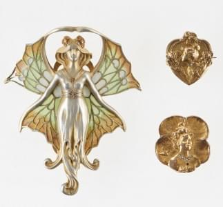 Argent, H 8 cm. On joint deux broches de style Art nouveau en mé...