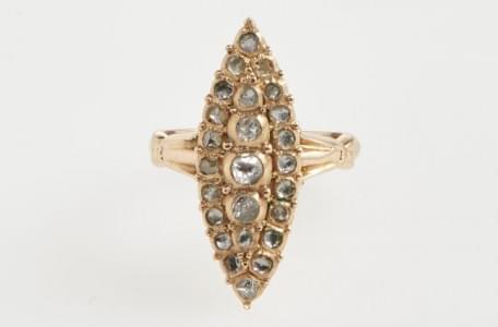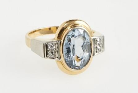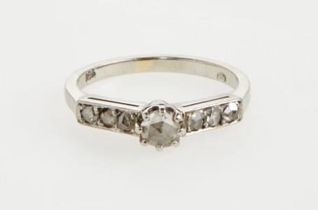 3178. Bague sertie d'un diamant d'imitation épaulé de diamants