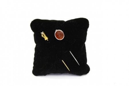 Or 750 et or rose 585, poids brut 5 g. On joint une épingle à ch...