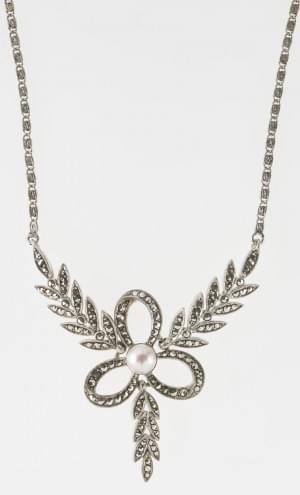 3113. Collier à motif de nœuds et guirlandes sertis de marcassites et...