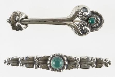 3142. Georg Jensen, lot de deux broches, l'une à motif de grappe de ra...