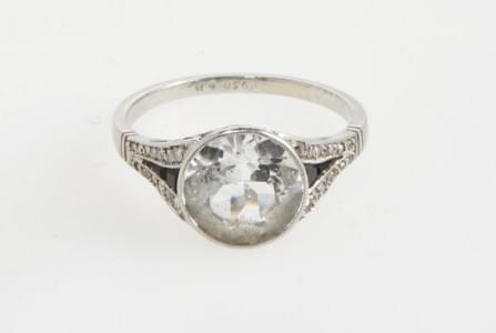 3129. Bague sertie d'une pierre d'imitation pour le diamant épaulée de...