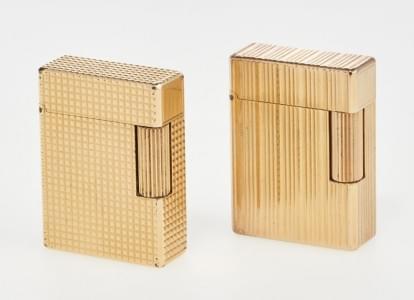3133. Dupont, lot de deux briquets à décor de stries et de pointes de...
