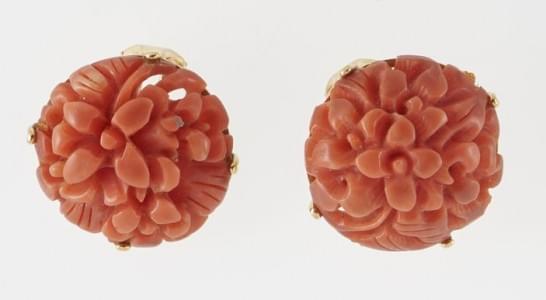 3134. Clips d'oreilles sertis de corail d'imitation sculpté