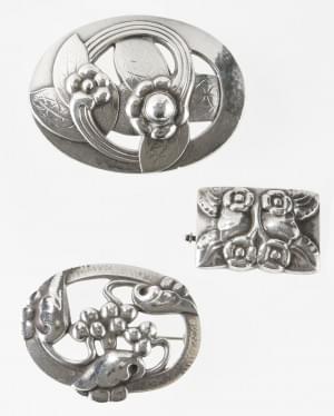 3143. Georg Jensen, lot de trois broches à motifs feuillagés et florau...