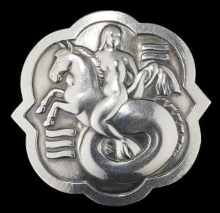 3144. Georg Jensen, broche polylobée à motif de Vénus sur un cheval ma...