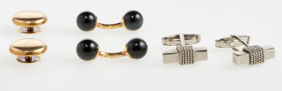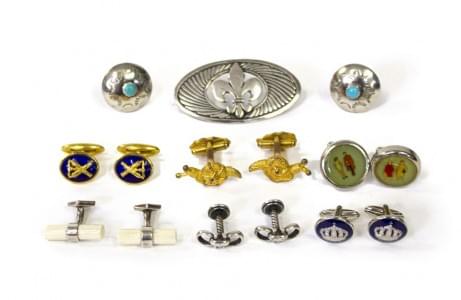 3176. Ensemble de sept paires de boutons de manchette et d'une boucle...