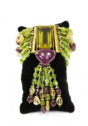 3156. Iradj Moini, bracelet multi-rangs de péridots terminé par un fer...